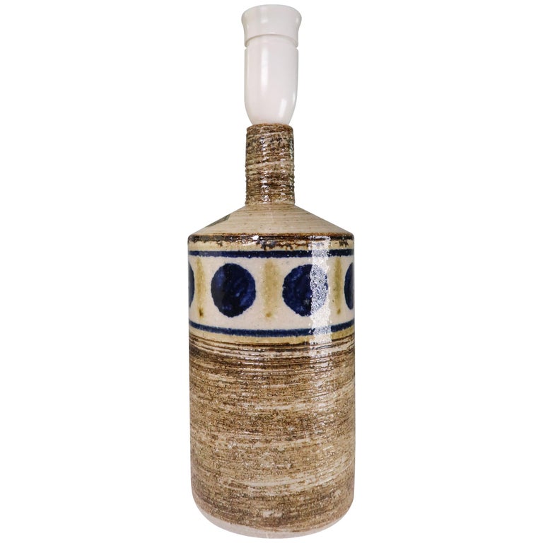 Danish ceramic lamp with blue dots from Kingo Keramik, 1960s. Excellent condition. Signed on bottom.